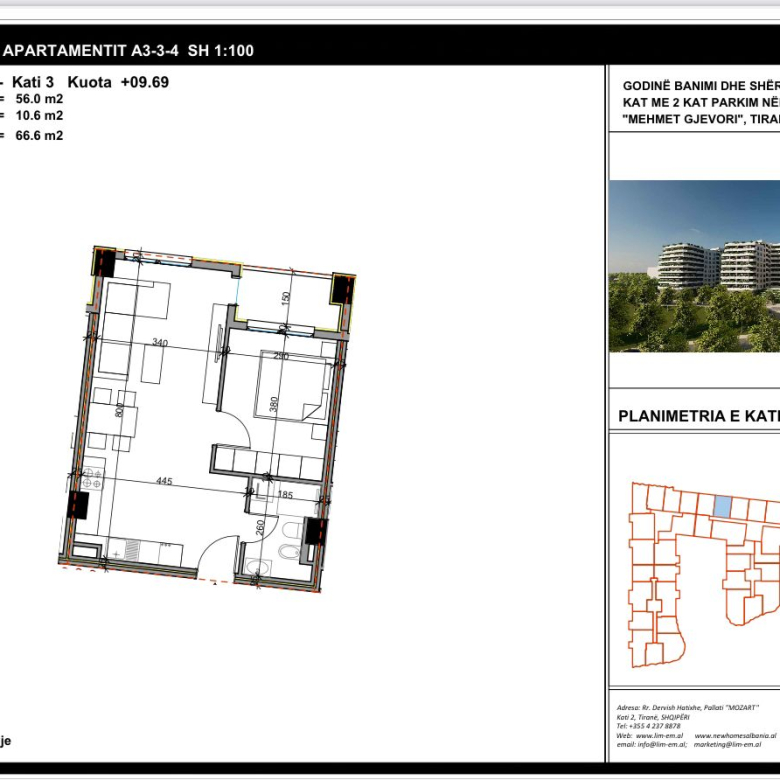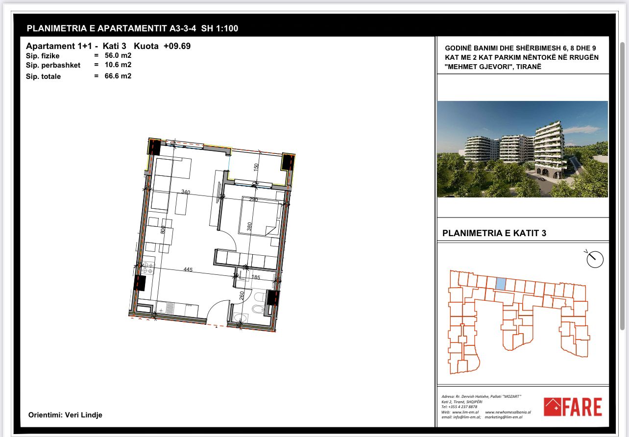 Apartamenti ka nje siperfaqe prej 66.6 m2.