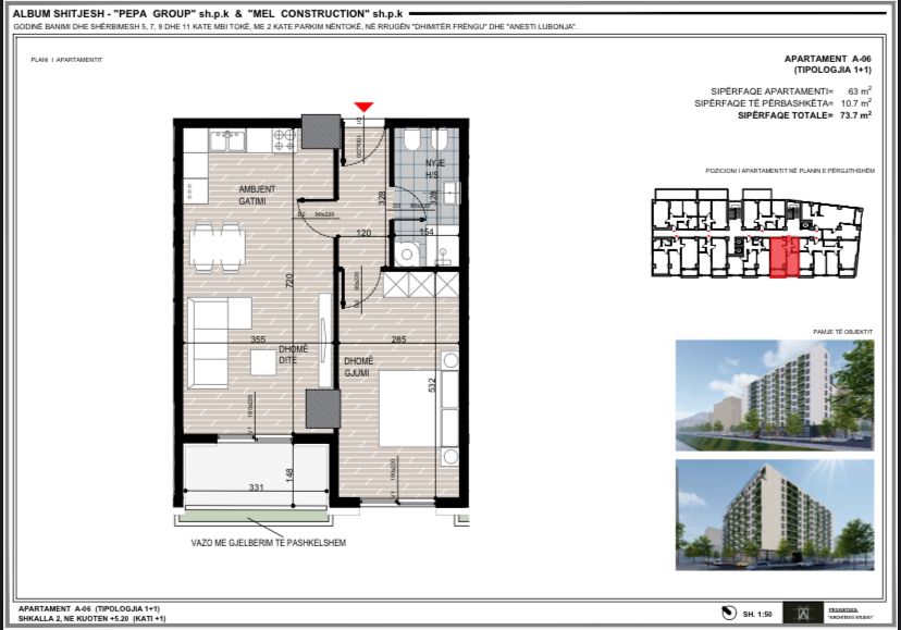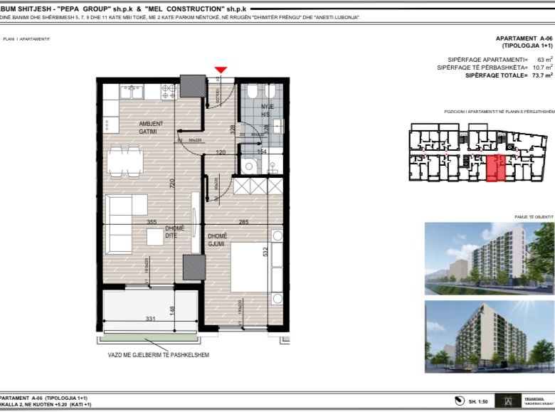 • Madhesia e pronës: 73.7 m²