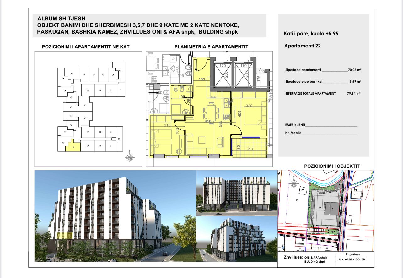 Apartamenti ka nje siperfaqe prej 80 m2 dhe ndodhet tek Belfiore 1 ne Paskuqan.