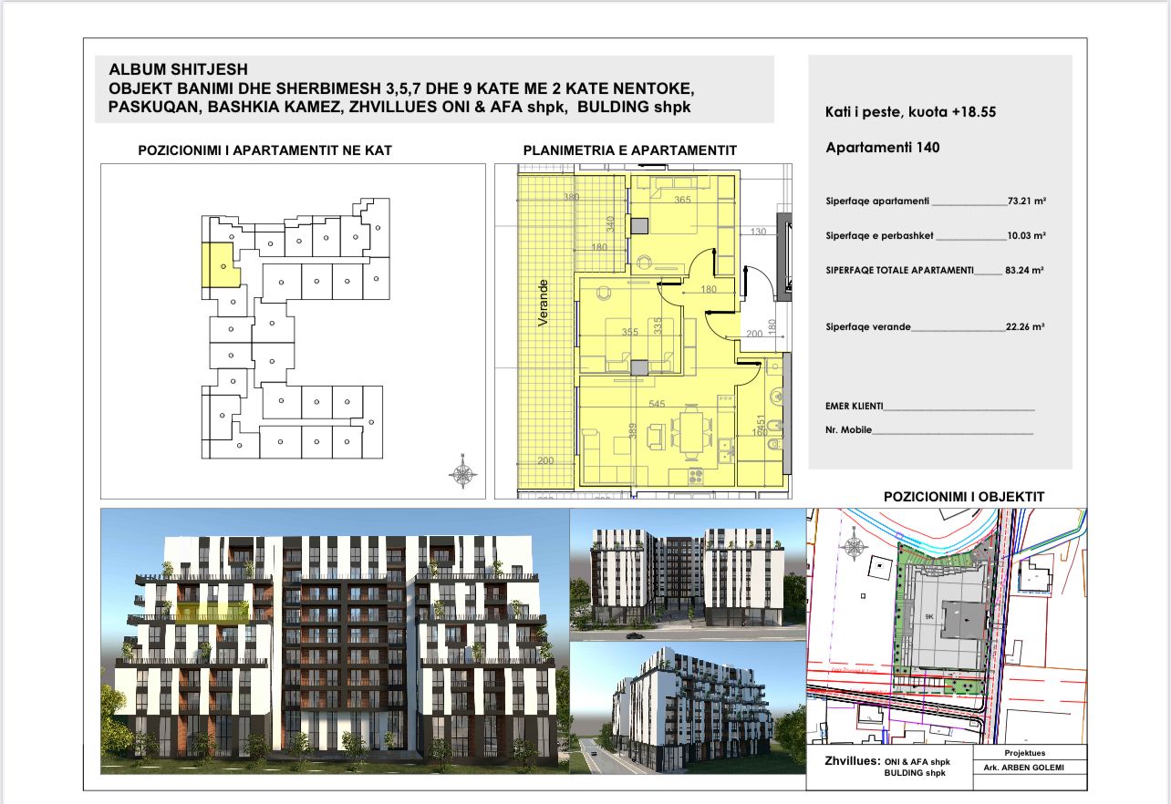 Apartamenti ka nje siperfaqe prej 83.24 m2 dhe ndodhet tek Belfiore 1 ne Paskuqan.
