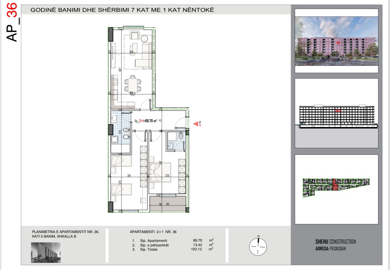 Apartamenti ndodhet ne katin e 5 ne zonen e Paskuqanit.