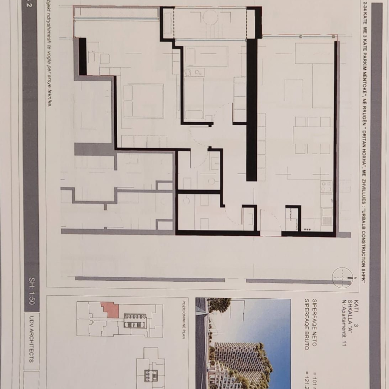 Apartamenti ka nje siperfaqe prej 121.20 m2 dhe