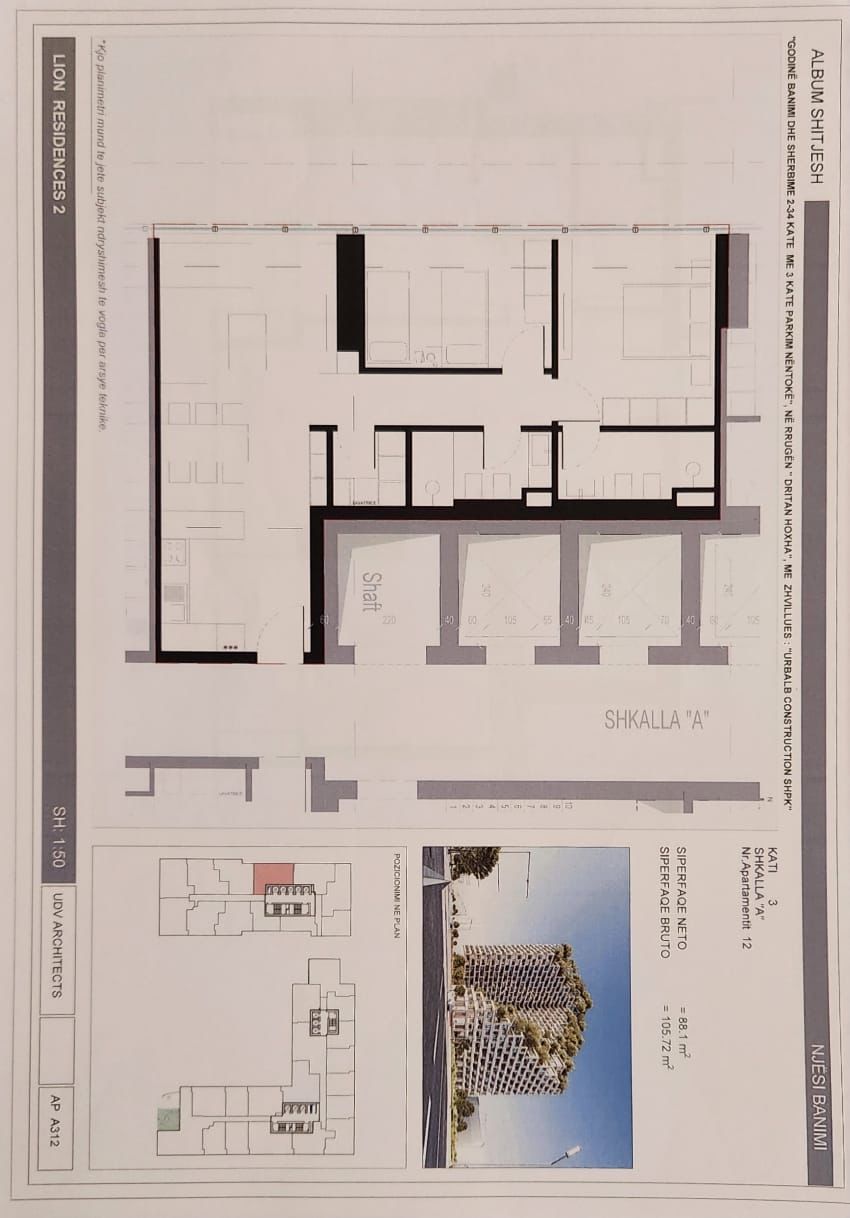 Apartamenti ka nje siperfaqe prej 105.72 m2 dhe