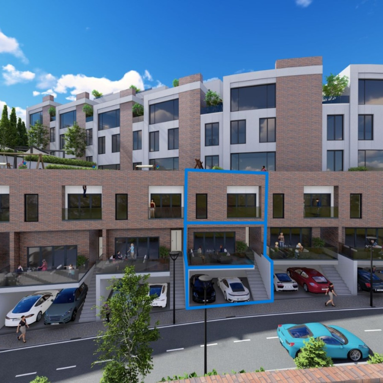 Ndertimi perfshin elemente moderne me fasada te kombinuara nga tulla dhe xham, duke krijuar nje estetike terheqese dhe te sofistikuar.